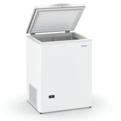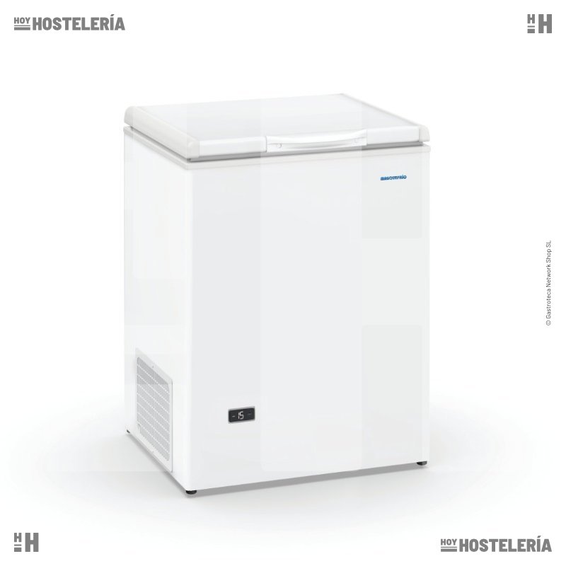 Arcón para conservación de congelados, con 105 litros de capacidad, puerta abatible ciega y control digital de temperatura.