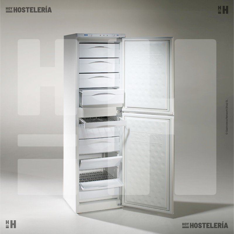 Congelador vertical de doble puerta con 4+5 cajones y 233 litros de capacidad.