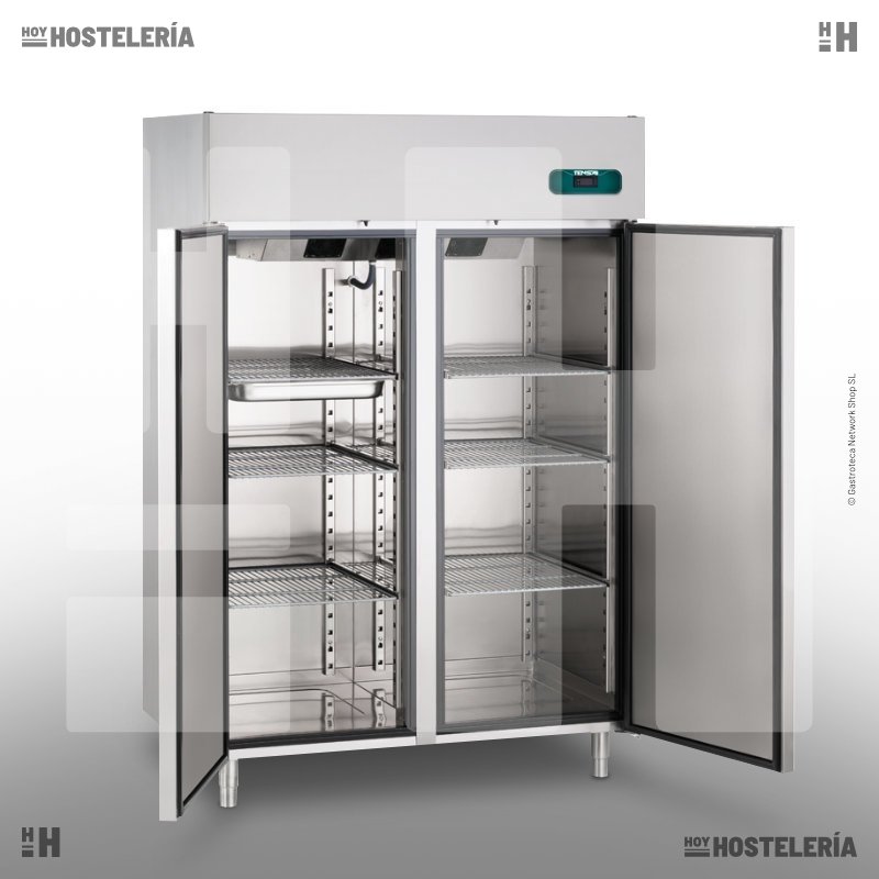 Armario gastronorm GN2/1 (congelación-refrigeración) ventilado, con 2 puertas, 6 (3+3) estantes GN2/1 de rejilla inox ajustables, control digital de temperatura y 864 litros de capacidad. Adecuado para conservación de alimentos congelados o refrigerados