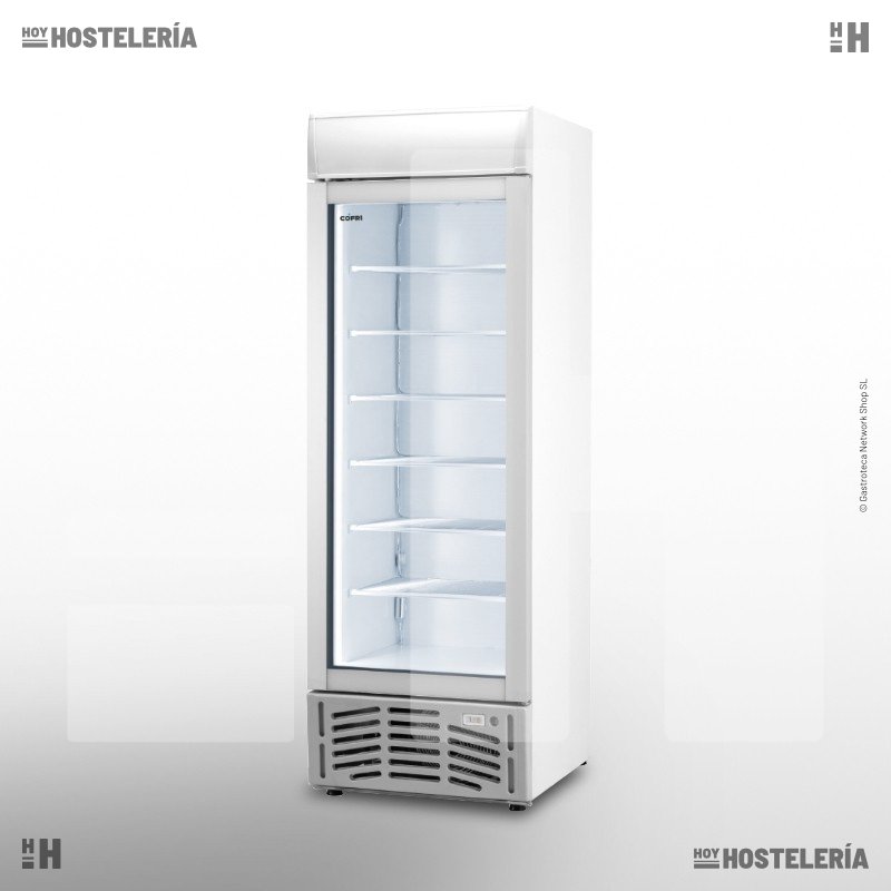 Armario expositor de congelación, especial heladería, con 330 litros de volumen neto, 6 niveles + base, evaporación estática, iluminación LED y termómetro analógico