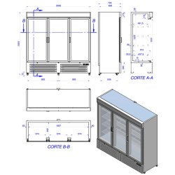 Armario expositor refrigerado de gran capacidad, con 3 puertas, 1657 litros de capacidad, 4 estantes por puerta con sistema de cremallera para la sujeción y regulación de altura, puertas de doble cristal con tirador incorporado en el marco, cierre con llave, control digital e iluminación interior. Distribución uniforme del frío en el interior del armario, gracias al excelente diseño del sistema de refrigeración ventilada, cuenta con un evaporador de tiro forzado.