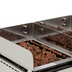 - Quemador diseño ARILEX con salida de llama por todo su perímetro asegurando un reparto uniforme de calor por toda la parrilla. Sin “zonas frías”. Gran poder calorífico con termopar de seguridad.