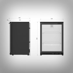 Expositor mural refrigerado sobrebanco de color negro con 1 puerta abatible, para refrigerar y exponer hasta 49 botellas de 75 cl. Este botellero Back-Bar está destinado a colocarse tras la barra sobre el mueble frente mostrador, tiene una capacidad de 135 litros e incluye 2 estantes de rejilla para organizar las botellas. Está fabricado con acero galvanizado, plastificado en color negro en el exterior. La puerta tiene doble acristalamiento con protección anti-condensación, cámara de aire interior y tirador de asa integrado en el marco.