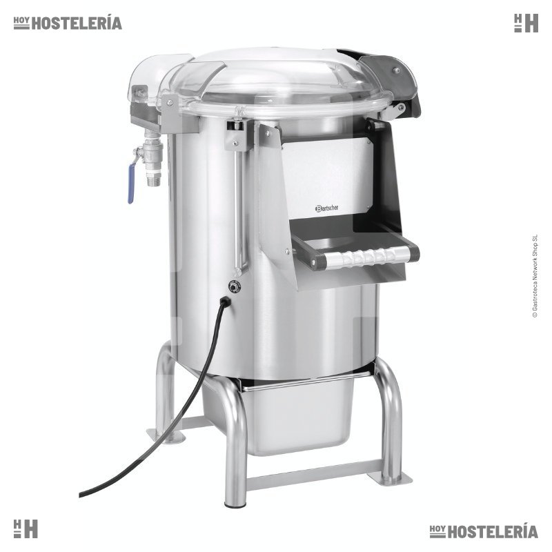 Máquina peladora de patatas con capacidad de hasta 5kg de producto por ciclo. Indispensable en cocinas profesionales.