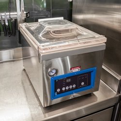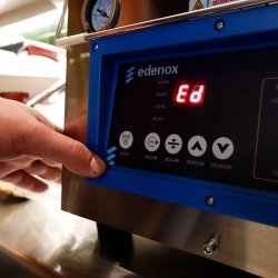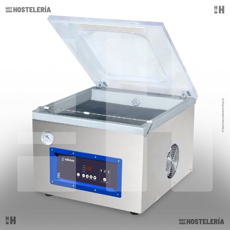 Envasadora de vació de sobremesa controlada por tiempo Serie 340 - VAKSIC-10 E de Edenox, con 1 barra de soldadura de 30cm. y bomba de vacío de 10m³/h.