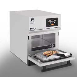 Horno de alta velocidad ST FAST 41/42 de FM Industrial, que combina la potencia del horno de convección y la rapidez del horno microondas en un horno ultra rápido de altas prestaciones. Tiene capacidad para 3 bandejas de 43x34 cm, pantalla de control táctil, memoria de almacenamiento de hasta 300 recetas, conectividad WIFI y USB. Con el horno ST FAST 41/42 es posible regenerar, hornear, asar y cocer en un tiempo sensiblemente menor que en los hornos tradicionales, lo que lo convierte en un equipo de cocción ideal para servicios intensivos en restaurantes, gastrobares, locales de comida rápida, etc.