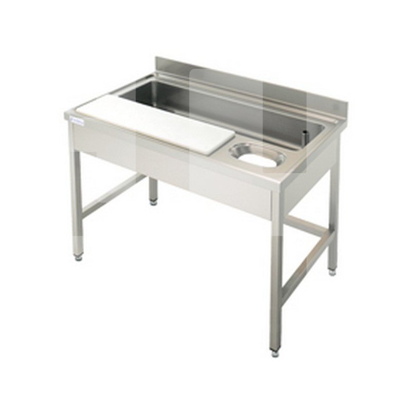 Incluye bastidor, con una cuba de gran capacidad y tabla de corte de polietileno.